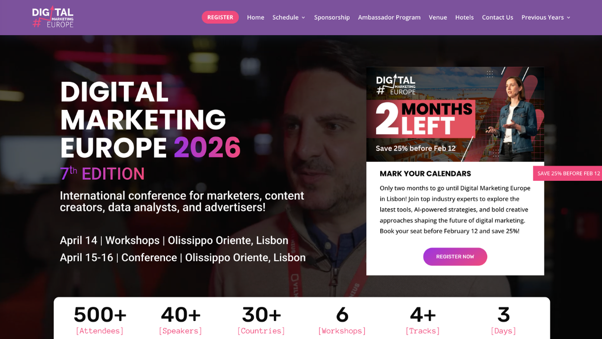 | 2026-04-14 | Digital Marketing Europe 2026 | Lisbon, Portugal |