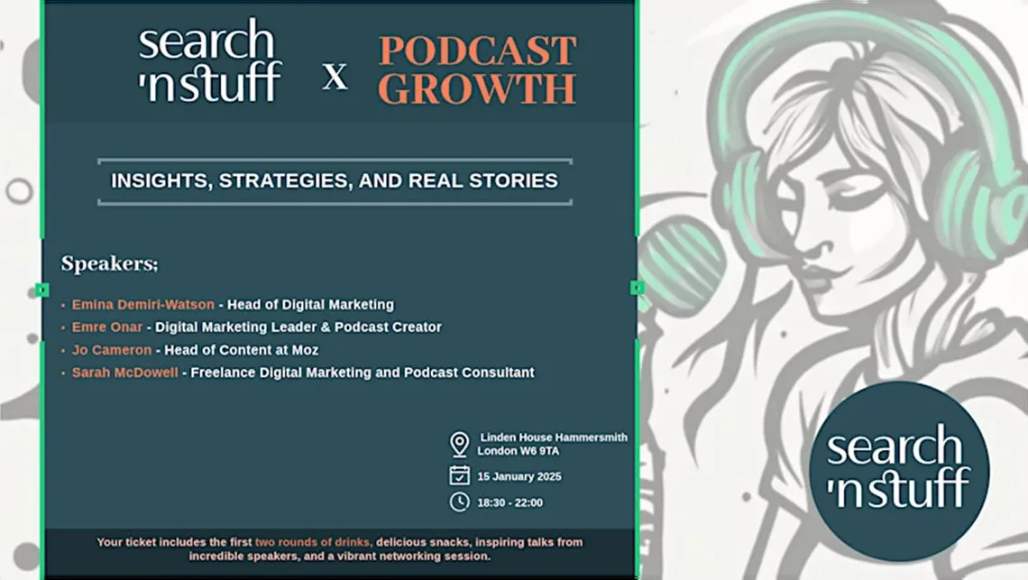 Join us for Search ‘n Stuff x Podcast Growth, an evening packed with insights, strategies, and real-life success stories from some of the brightest minds in podcasting and digital marketing. Whether you’re starting your podcast journey or looking to scale your existing platform, this event will inspire and empower you with actionable takeaways.